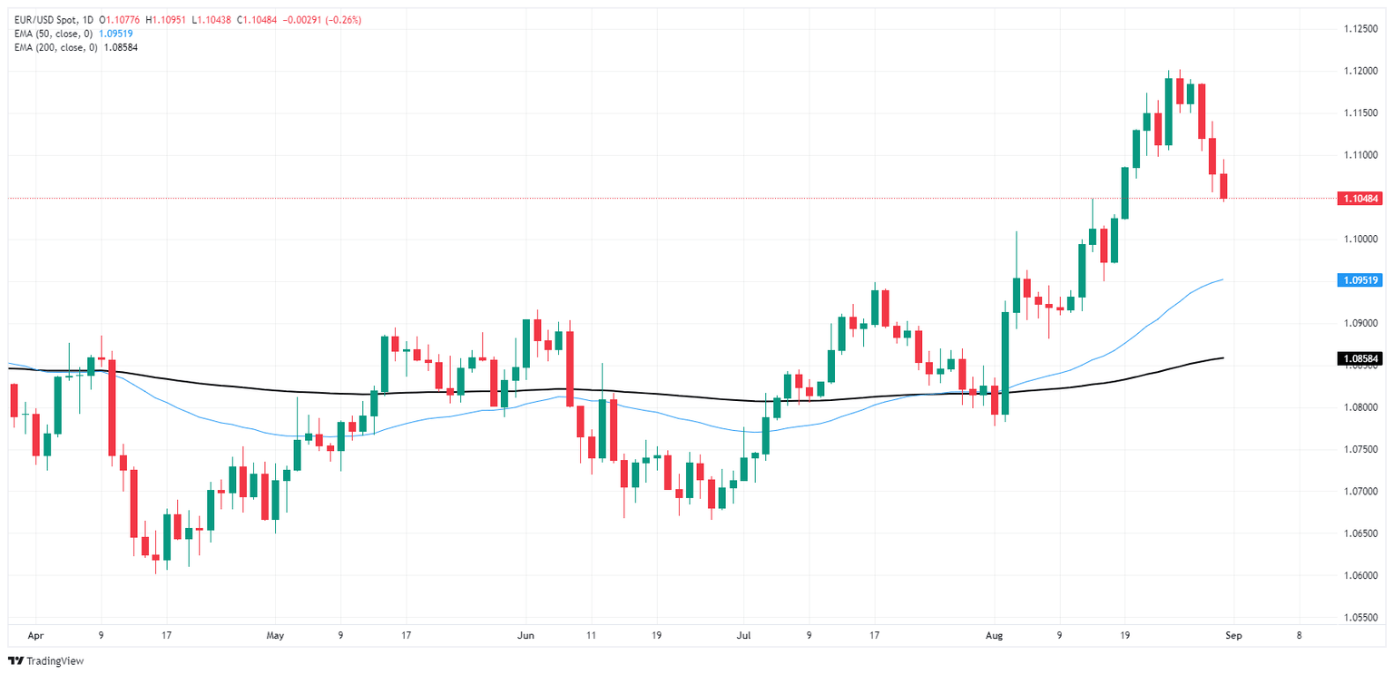 EUR/USD tilted further into the red on Friday, extending a downside move into a third straight day and dragging Fiber down to 1.1050 to round out the trading week. EU inflation figures released early Friday failed to impress anybody in particular, and US Personal Consumption Expenditure Price Index (PCE) didn’t stray far from forecasts, keeping broad-market bets on rate cuts aimed squarely at the Federal Reserve’s (Fed) next rate call on September 18.