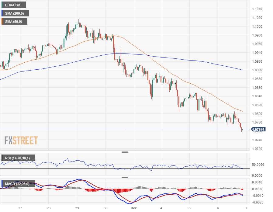 The EUR/USD is extending a backslide through the 200-day Simple Moving Average (SMA), cleanly breaking through the 1.0800 level and heading straight for the 50-day SMA at the 1.0700 handle.