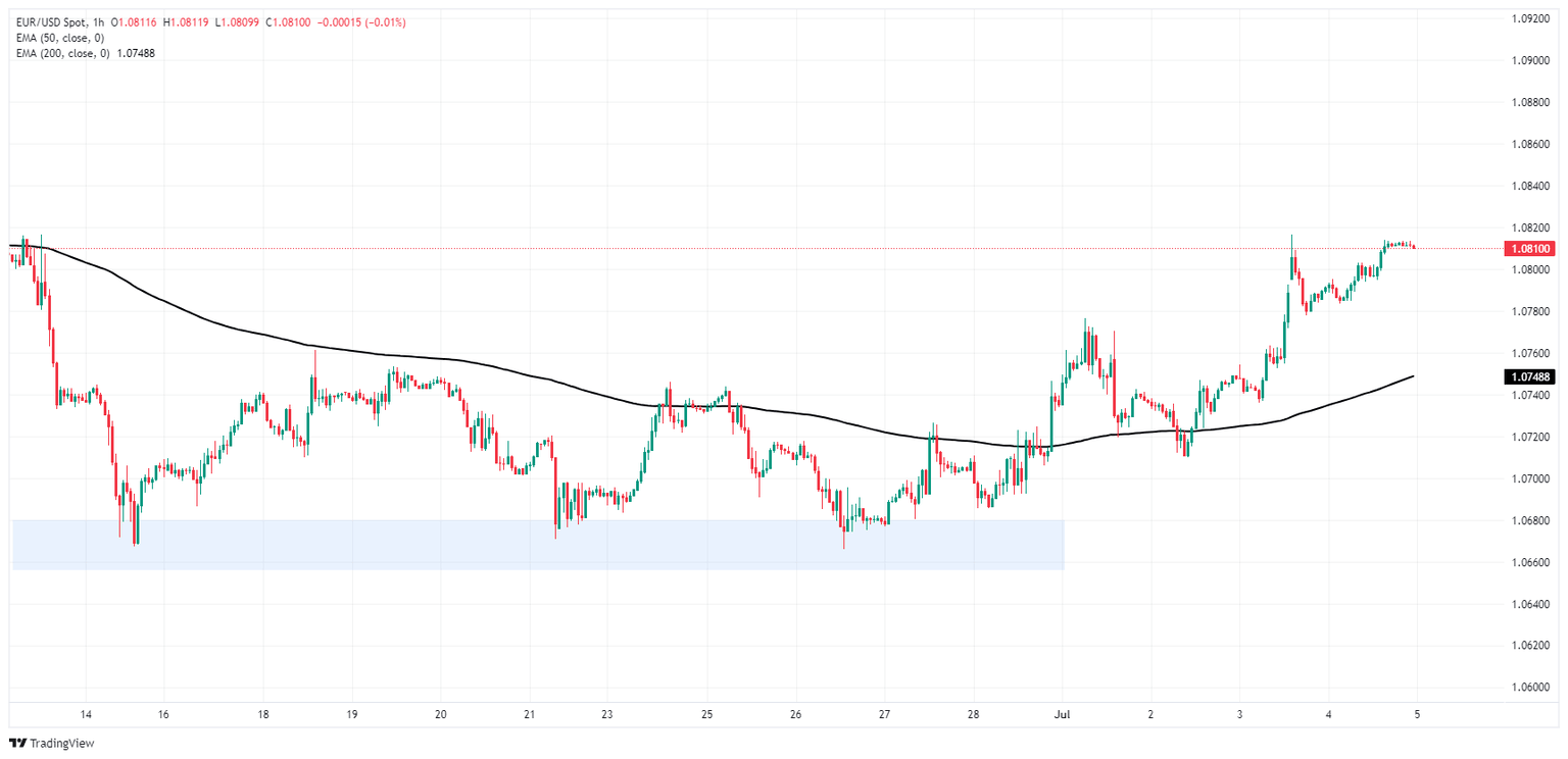 EUR/USD has chalked in a sixth consecutive trading day in green as Friday’s economic data docket looms large ahead. European Retail Sales and the latest round of US Nonfarm Payrolls (NFP) jobs data could see a significant amount of chart churn. US markets will be returning to the fold after taking Thursday off for the US Independence Day holiday, and market activity is set to tick back up noticeably during Friday’s US trading window.