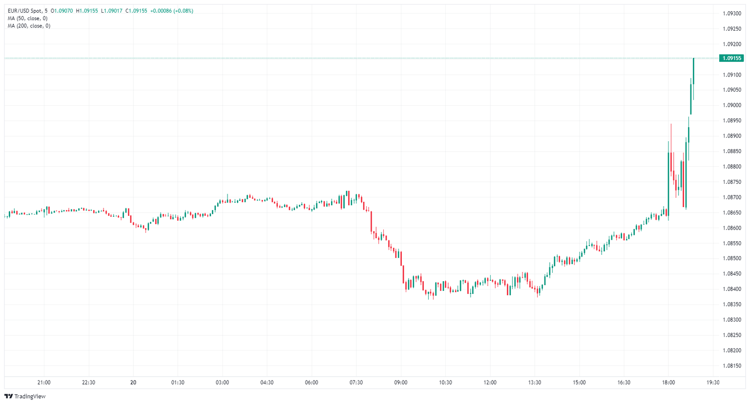 EUR/USD jumps over 1.0900 after Fed rate hold, markets interpret dovish FOMC stance