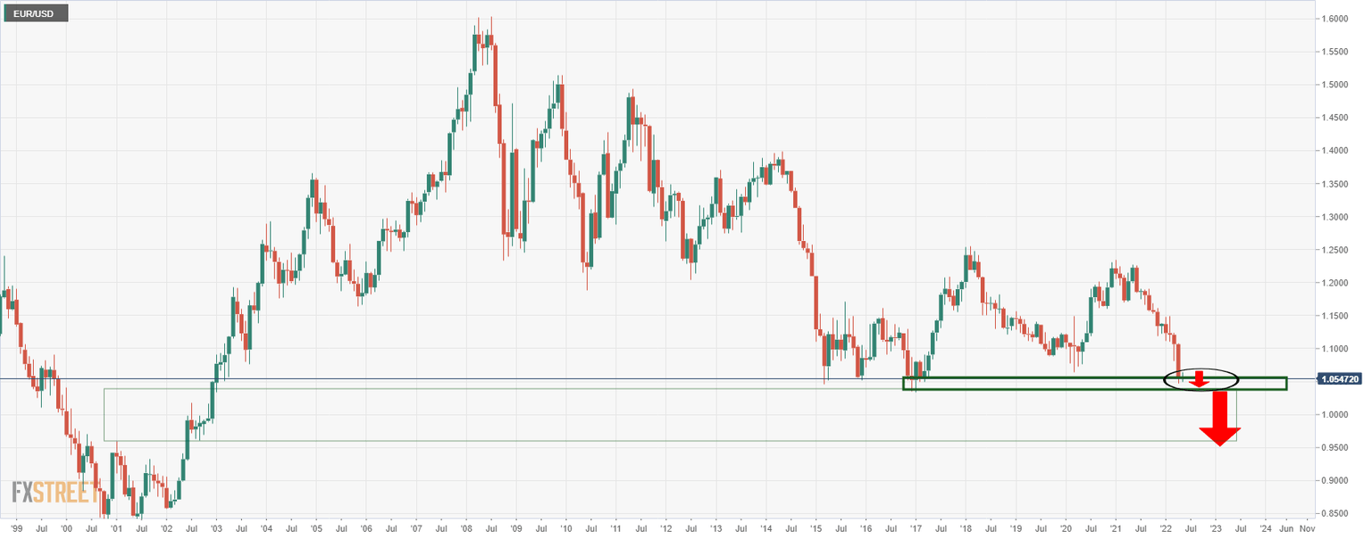 - EUR/USD bears are moving in for the kill to break 1.05 the figure.