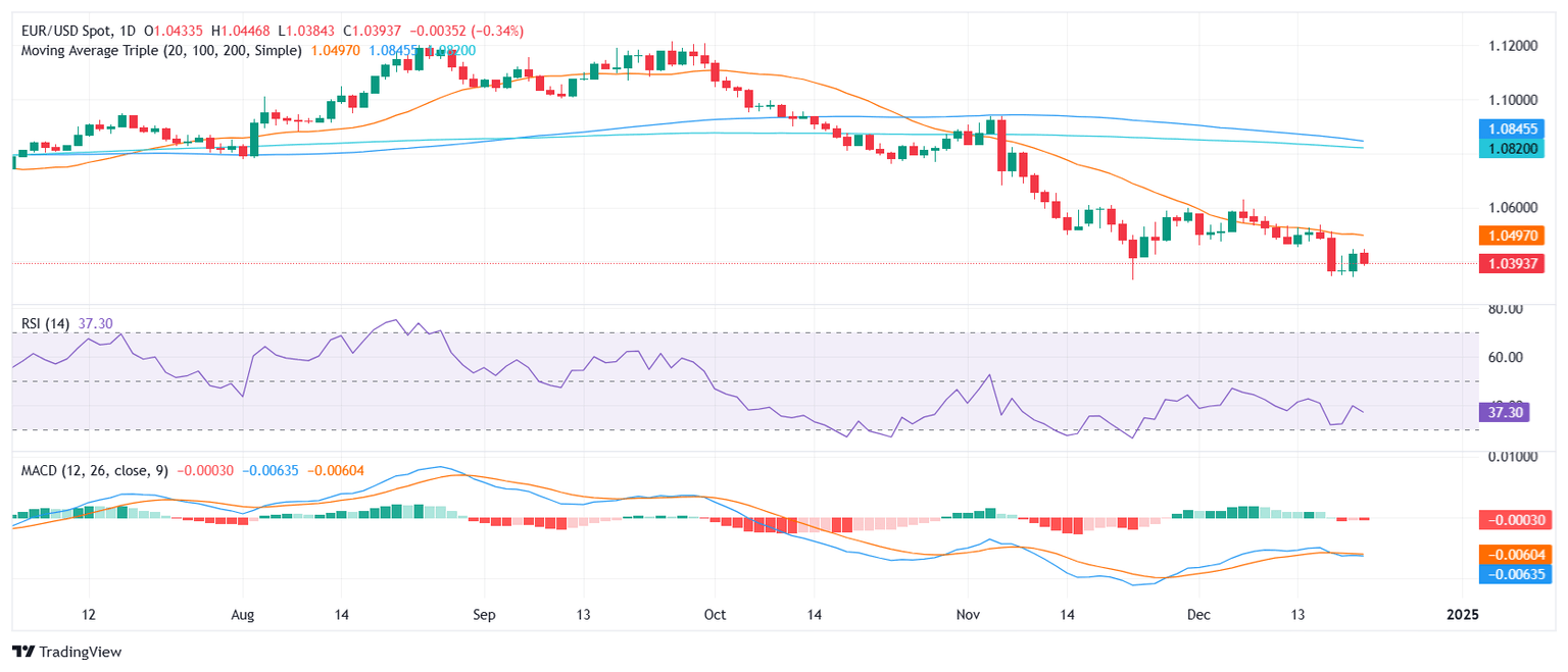 EUR/USD opened the new trading week on a softer note, sliding by 0.35% to hover near 1.0400. Although the pair had posted modest gains in the previous sessions, sellers re-emerged to push prices lower, reaffirming the dominance of a broader downtrend. The 20-day Simple Moving Average (SMA), situated around 1.0500, still serves as an immediate ceiling that the bulls have been unable to surmount.