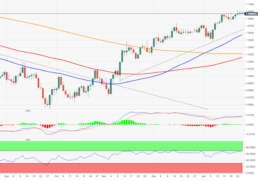 The continuation of the uptrend now needs to rapidly clear the 2023 high at 1.0926 (January 23) to allow for a test of the weekly top at 1.0936 (April 21 2022).