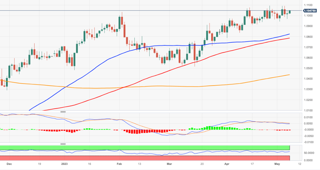 Further recovery appears on the table for the time being. The surpass of with the 2023 peak at 1.1095 (April 26) should encourage the pair to rapidly leave behind the round level at 1.1100 before embarking on a potential visit to the weekly high at 1.1184 (March 21 2022)