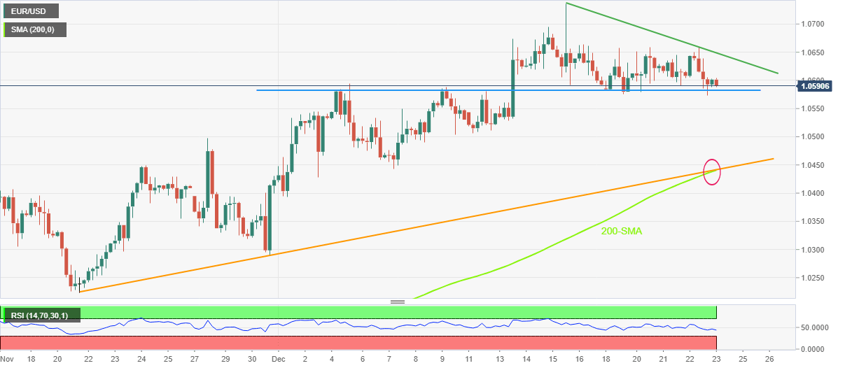 EUR/USD fades late Thursday’s corrective bounce off short-term key support as it retreats to 1.0590 during Friday’s Asian session.
