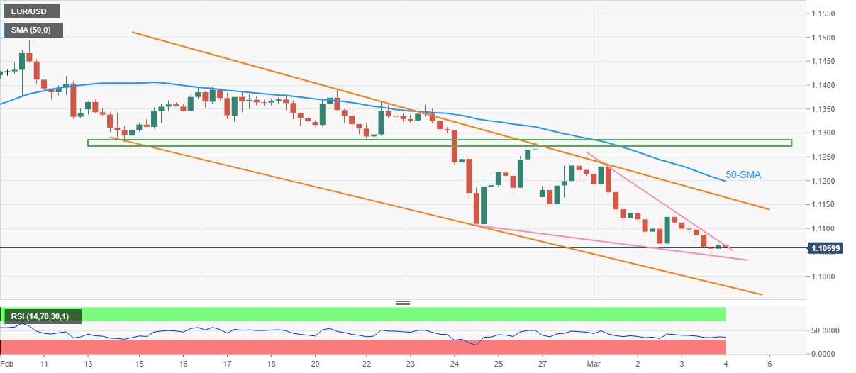 EUR/USD Price Analysis: Off yearly low inside nearby bearish channel, eyes to reclaim 1.1100