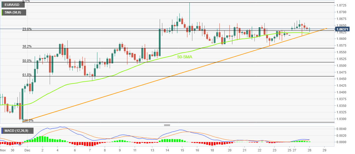 However, a clear downside break of the 1.0620 support confluence comprising the 50-SMA and an upward-sloping trend line from late November becomes necessary for the EUR/USD sellers to retake control.