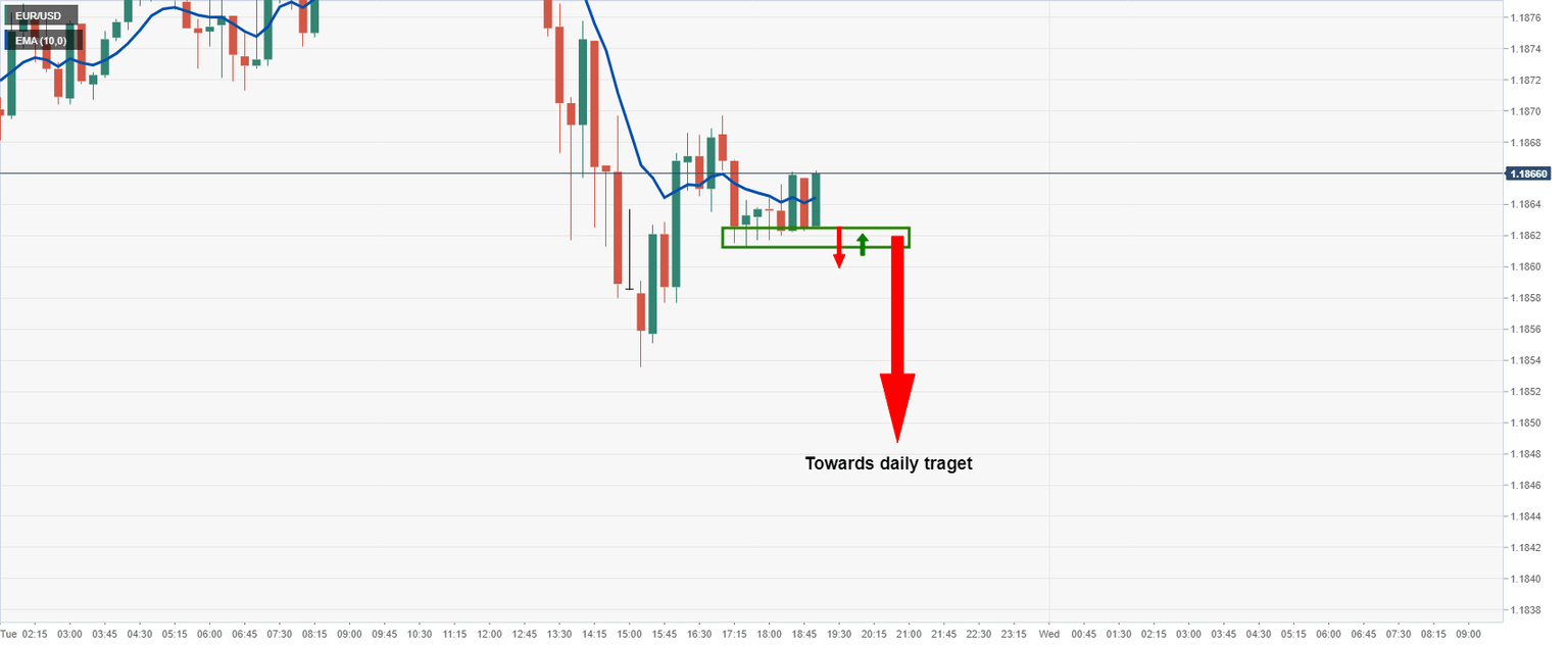 Meanwhile, this opens a downside opportunity which can be monitored from a lower vantage point on both the hourly and 15-min charts as follows: