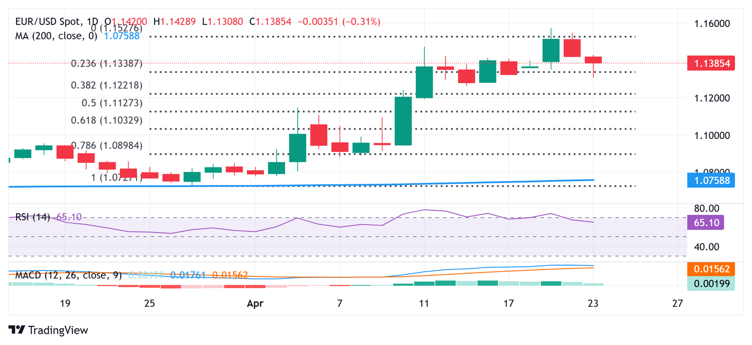 EUR/USD Price Forecast: Bounces off 1.1300 neighborhood; shows resilience below 23.6% Fibo.