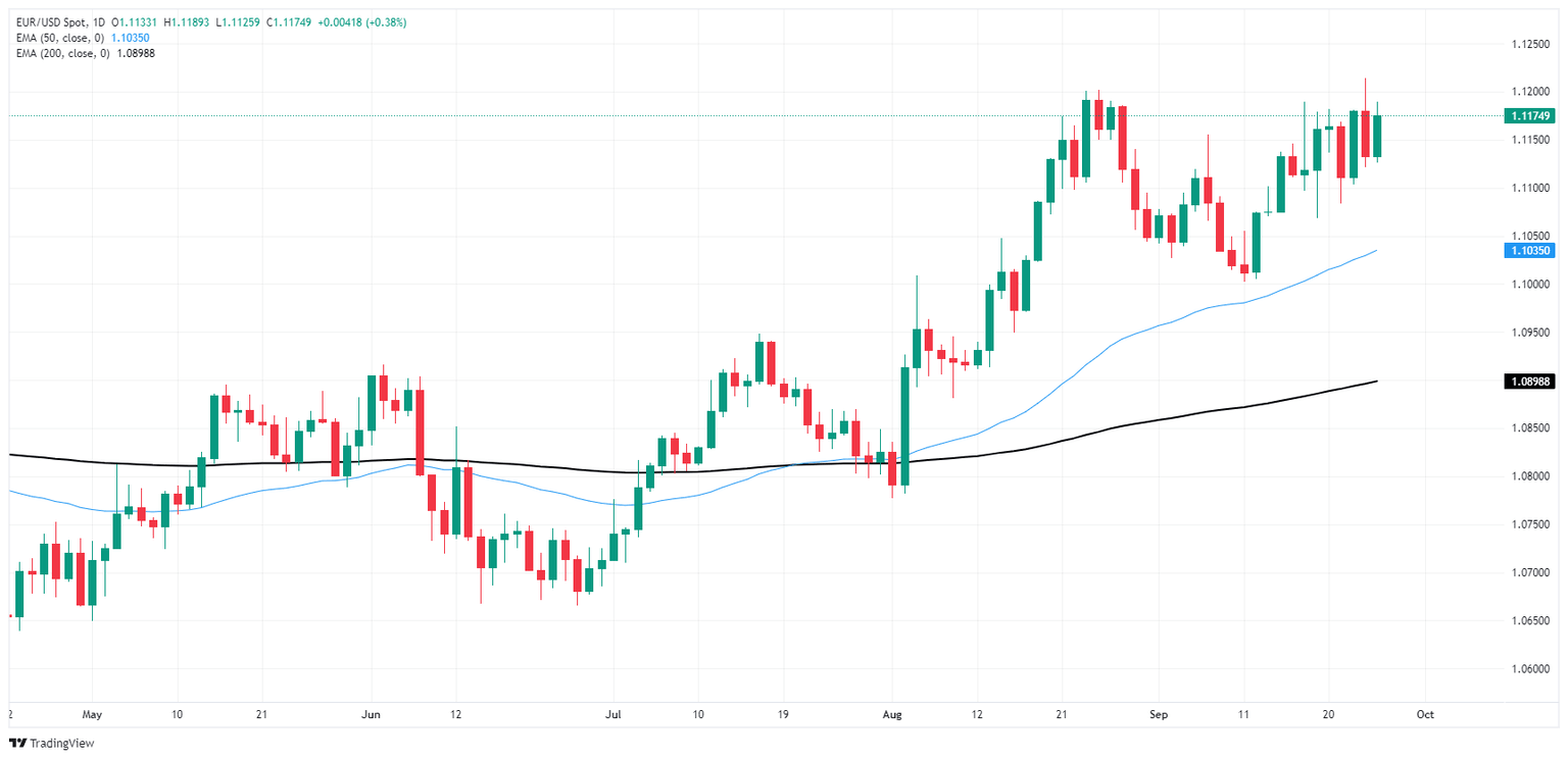 Despite Thursday’s bullish bounceback, Fiber remains capped below the 1.1200 handle. Bidders are struggling to muscle EUR/USD back into the high end, but a lack of meaningful momentum in the hands of sellers is limiting options for a downside swing.