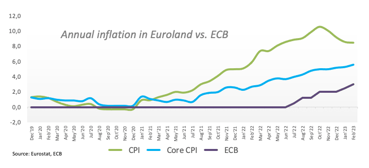 - EMU Final Inflation Rate rose 8.5% YoY in February.