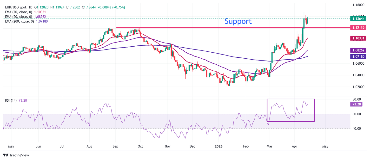 - El EUR/USD rebota bruscamente cerca de 1.1400 mientras el Dólar estadounidense retrocede debido a los erráticos anuncios de tarifas de Trump.