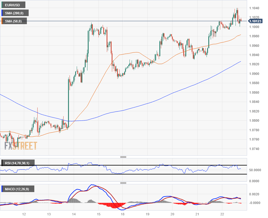 The EUR/USD climbed into an 18-week high at 1.1040 before slipping back towards 1.1000 as markets wind up operations before heading into the holiday break. US inflation missed the mark on Friday, printing below expectations and keeping investor expectations of Federal Reserve (Fed) rate cuts accelerating in 2024.