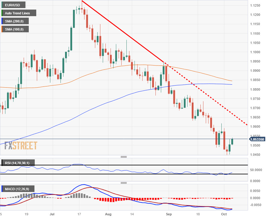 EUR/USD bids are tapping into the 200-hour Simple Moving Average (SMA) near 1.0540 as the Euro looks to extend its recent rebound against the Greenback. A consistent lower-highs pattern leaves bullish momentum firmly underpowered, and Euro bidders will need to first reclaim 1.0600 before staging a longer-term recovery.