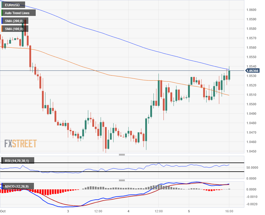 The EUR/USD is reaching higher on Thursday, making a stretch for 1.0550 heading into the end-week populated with US Non-Farm Payroll (NFP) figures. The Euro (EUR) is up a scant 0.3% from Thursday's opening bids of 1.0506 as European Central Bank (ECB) officials continue to talk down the potential for a continuation of the rate hike cycle.