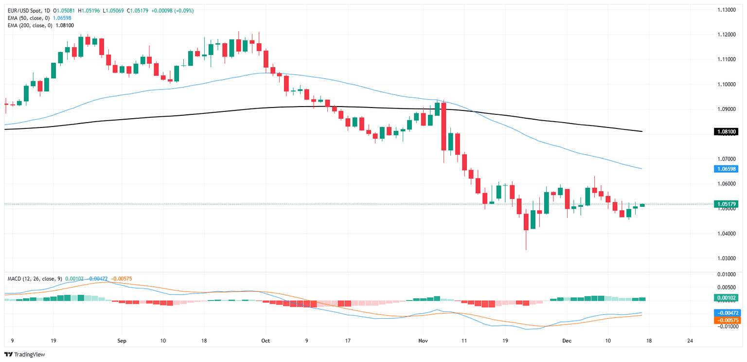 EUR/USD struck a sluggishly bullish note on Monday, drifting into the high end of near-term consolidation just north of the 1.0500 handle, albeit with a notable lack of conviction. European data is comparatively limited this week, leaving Fiber traders to face a hefty data docket on the US side of things.