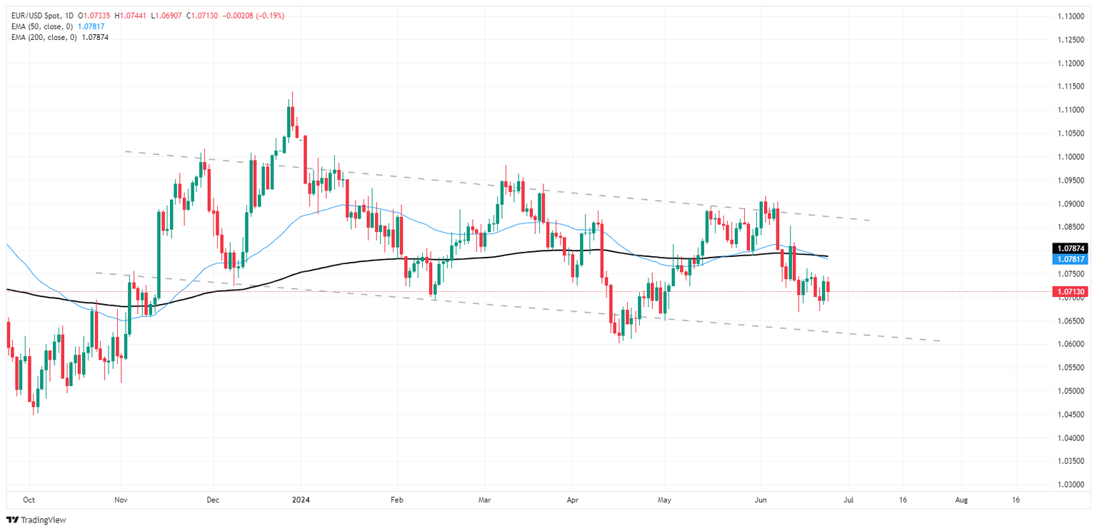 EUR/USD traded within familiar levels on Wednesday, keeping the Fiber trapped in near-term consolidation just north of 1.0700 as Euro traders hunker down for the wait to meaningful data releases. Momentum is set to remain thin as markets await fresh data to drive market flows beginning on Thursday.
