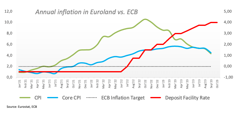 The offered bias prevails around the single currency after the European Central Bank (ECB) matched expectations and left its interest rates unchanged at its event on Thursday. At its statement, the ECB reiterated that inflation is seen higher for longer, at the time when the Council stated that current rate levels must be maintained for a sufficiently long period.