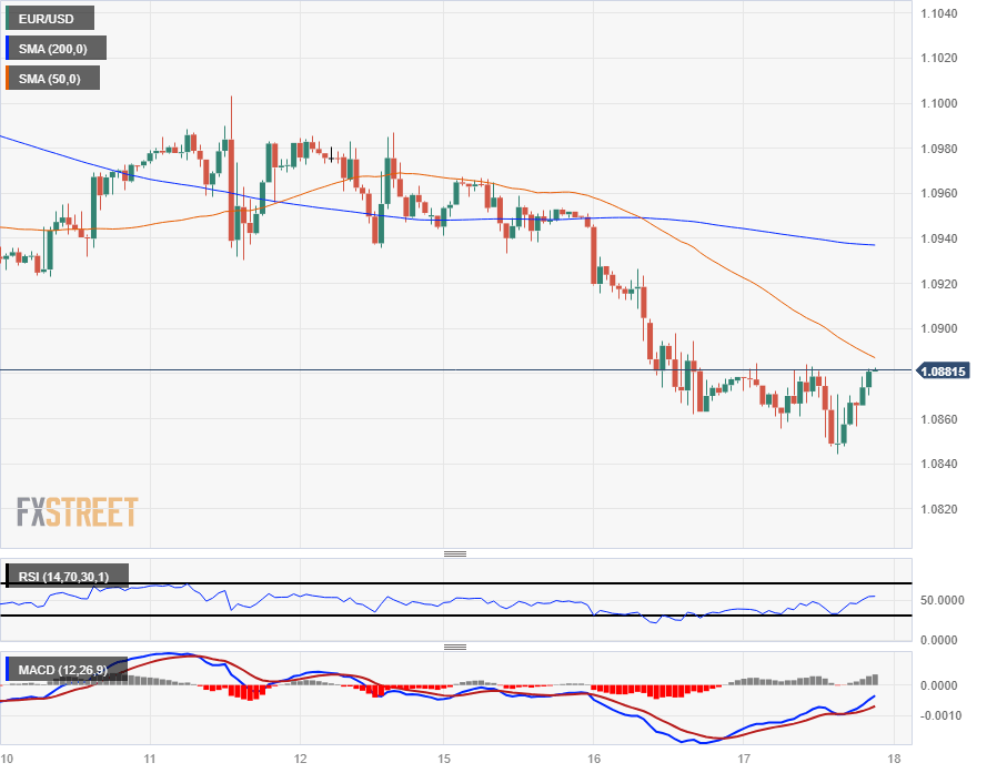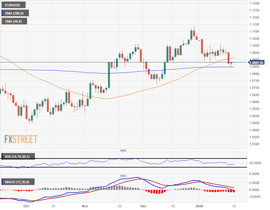 The EUR/USD tumbled into the 1.0850 region in intraday action on Wednesday, getting pushed further away from the 200-hour Simple Moving Average (SMA) near 1.0940. The pair is testing into one-month lows, down about 1.3% from early January’s test into the 1.1000 major handle.