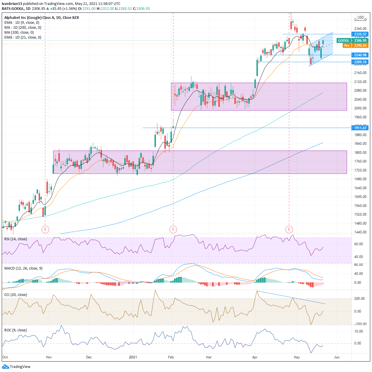FAANGTastic Chart Analysis: FB, AAPL, AMZN, NFLX, GOOGL, TSLA key daily technical levels for May 21