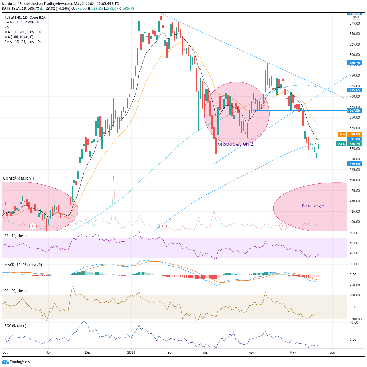 A beautiful move from Tesla on Thursday sees it retrace up to the 200-day moving average at $590. This is now the key level, and it has a confluence of resistance with the $591 line identified. A break of this and the nearby 9-day moving average will turn the recent bearish tide back in favour of the bulls. A break above $591 could accelerate to $625 as there is not much volume despite the steep fall, so this might be a form of vacuum. Failure to break $539 can also be taken as a victory for bulls on the longer-term horizon as it will result in a higher low, albeit only marginally (but they still count). $539 is now the key. With a break, it probably sees Tesla slip further to our bear target. Hold and Tesla can stabilize. and breaking $625 sees bulls back in control. The momentum oscillators RSI, CCI and ROC have all been close to or signalling oversold conditions recently.