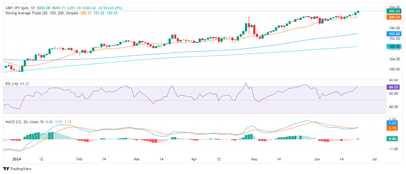 - GBP/JPY extends its rally, hitting fresh cycle highs of around 202.50 on Monday.