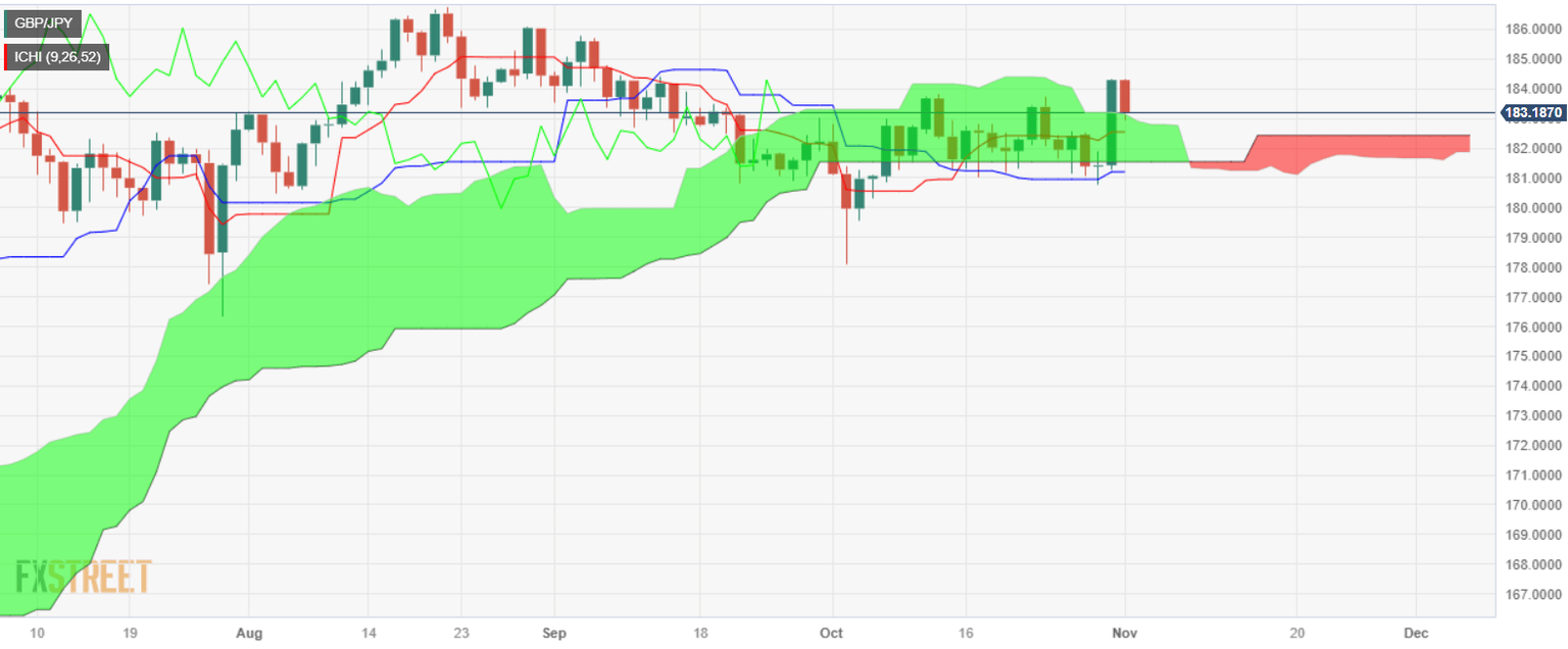 GBP/JPY Price Analysis: Oscillates on top of Kumo, above 183.00