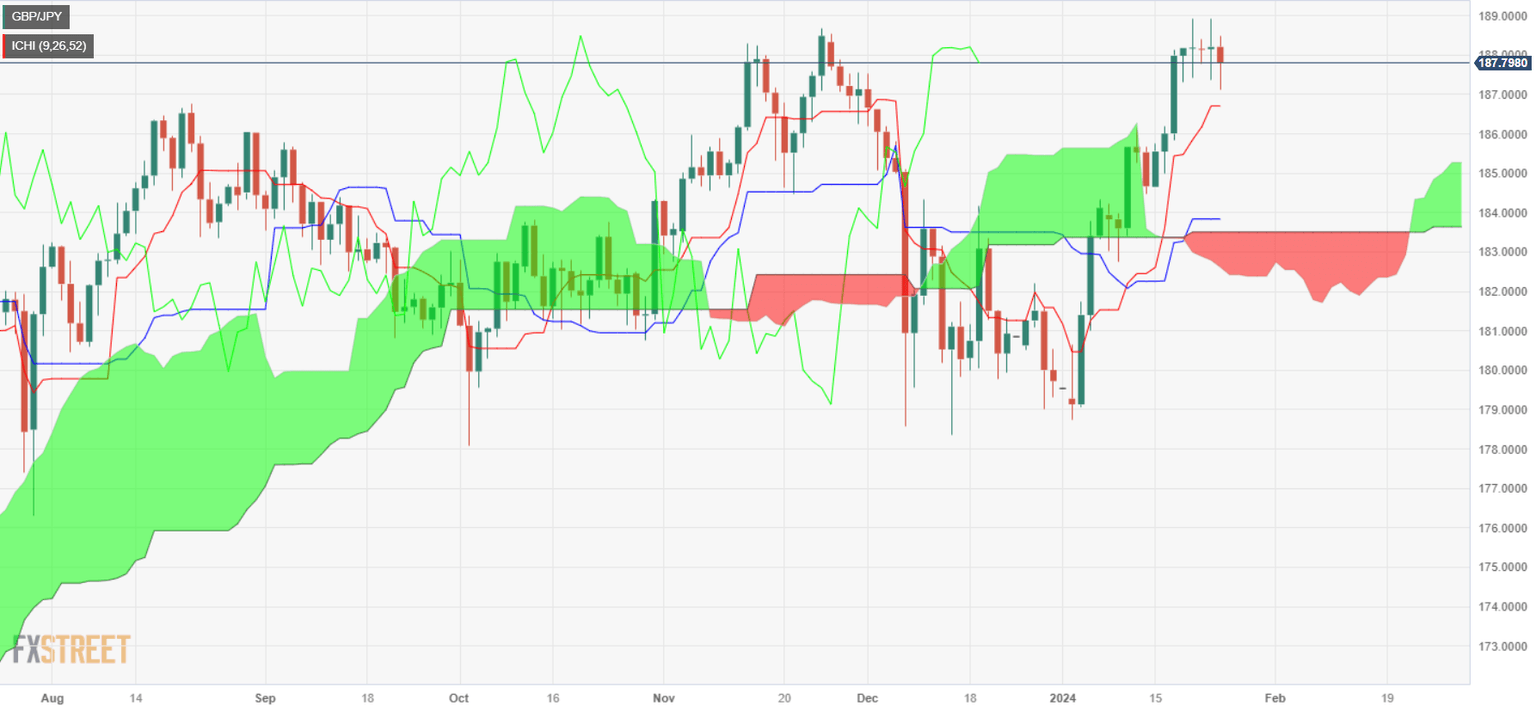 The daily chart portrays the pair peaked at around the 188.00 figure, and since sellers took over buyers, they dragged the GBP/JPY exchange rate to the 187.00 handle. Nevertheless, they must clear the psychological 187.00 barrier ahead of hurdling the Tenkan-Sen at 186.70. A breach of those two levels will expose the Senkou Span A at 185.26, followed by the 185.00 mark.