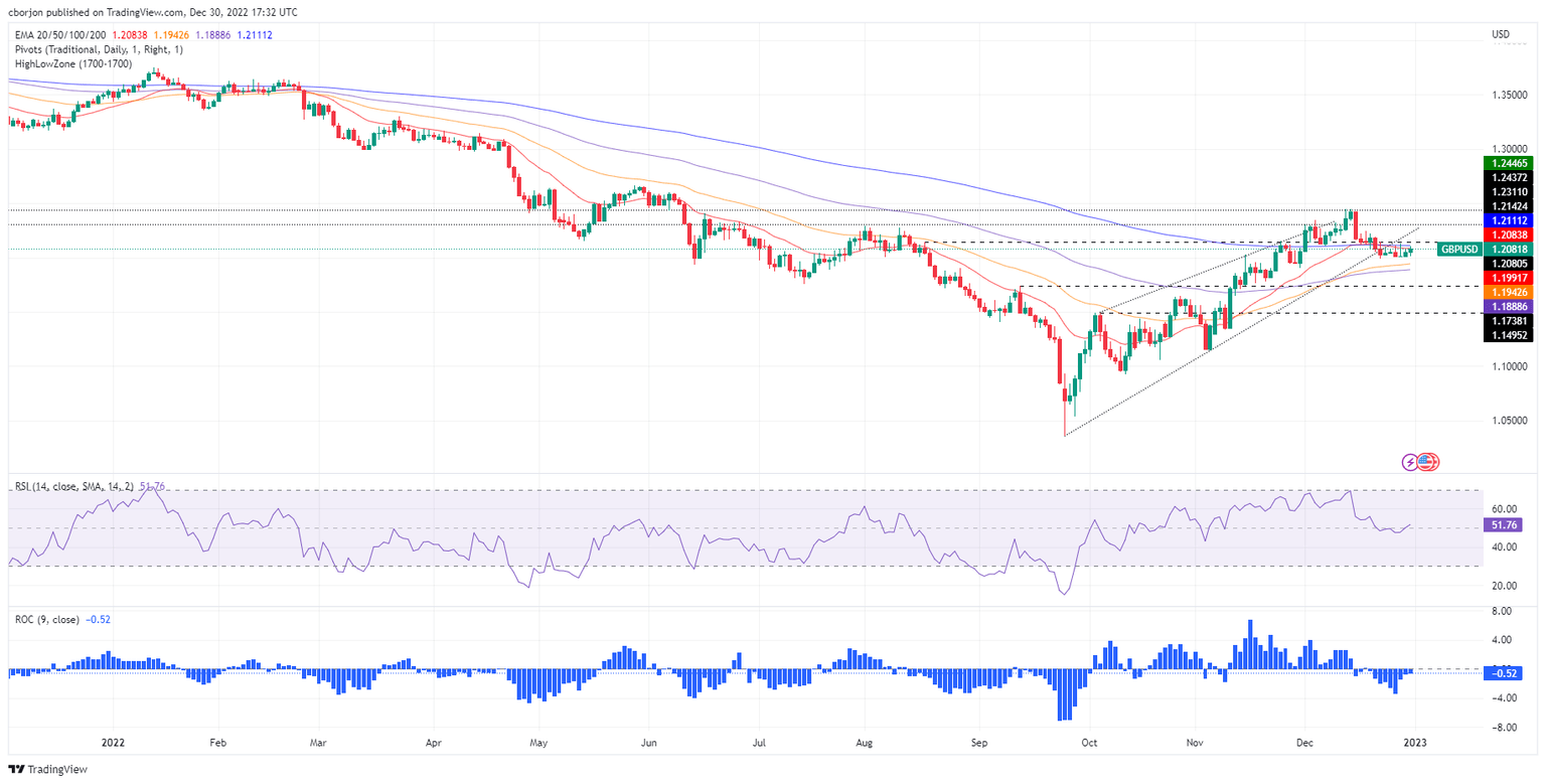 The Pound Sterling (GBP) pares its losses against the US Dollar (USD) due to risk aversion dominating the last trading day of 2022. Wall Street extended its losses, while the lack of news kept the GBP/USD within familiar exchange rates. At the time of writing, the GBP/USD is trading at 1.2079 after testing daily lows of 1.2009.