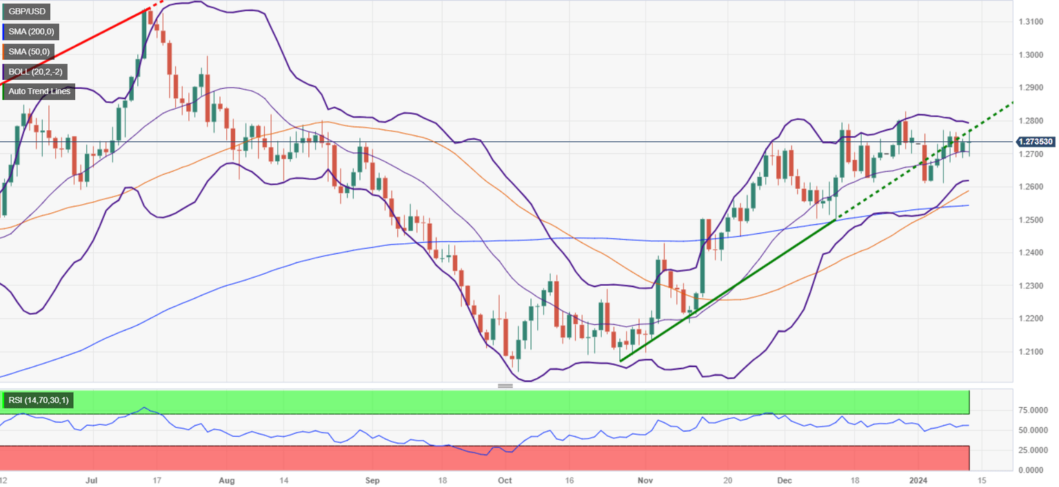 The Pound Sterling remains on the back foot in the mid-North American session on Thursday, as inflation in the United States (US) picked up more than estimated in December, which might deter the US Federal Reserve (Fed) from easing monetary policy as investors estimate. The GBP/USD trades at 1.2734, printing losses of 0.02%.