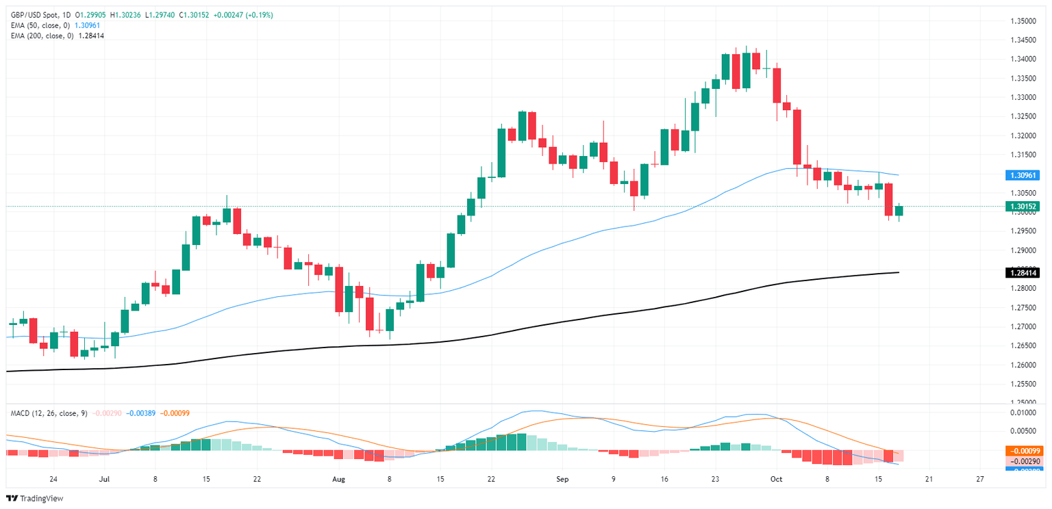 The Moving Average Convergence Divergence (MACD) indicator is flashing warning signs of deeper downside risk, as both the MACD line and the signal line remain in negative territory. The histogram is showing signs of weakening bearish momentum, but the overall bias remains to the downside. A sustained break below 1.3000 could open the door toward the 1.2900 handle, with a further drop potentially targeting the 200-day EMA. Conversely, any recovery above the 1.3050 level would be needed to invalidate the bearish outlook, with a potential upside target of 1.3150.