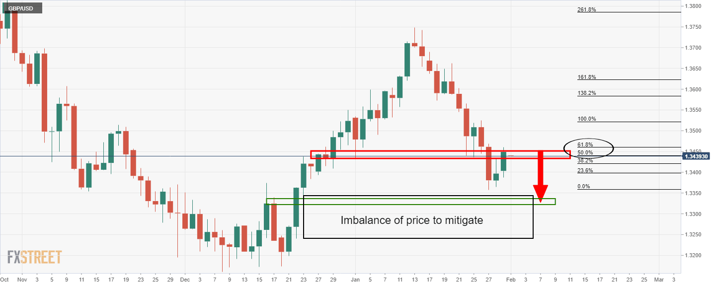1.3525 could be tested at a stretch as the last defence for a significant reversal of the current bearish trend. If, on the other hand, the bears beat down the doors, the dynamic support would come under pressure and a break of there would expose 1.3350 and lower towards 1.3240.