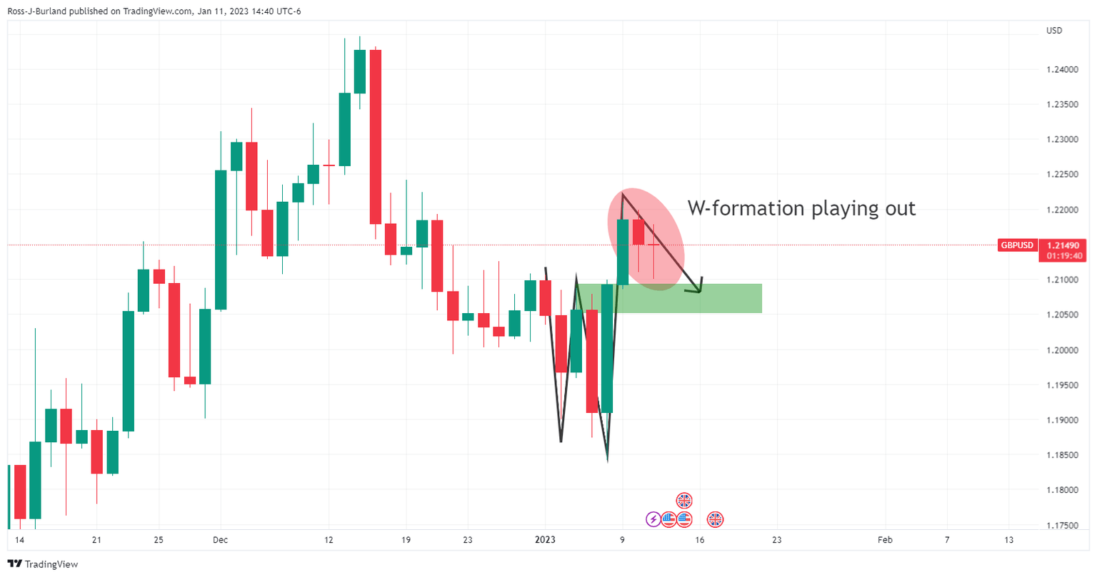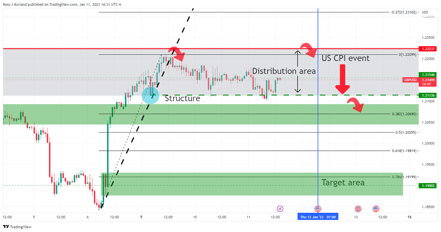 As per the start of the week's technical analysis for GBP/USD, GBP/USD Price Analysis: Bullish impulse is decelerating, eyes on 1.2150, where the outlook has been bearish while below 1.2400 and 1.2220 nearer-term highs, cable has remained hamstrung to the downside as the following illustrates. Meanwhile, the US Consumer Price Index could be the catalyst to trigger a move below 1.2100 recent lows.
