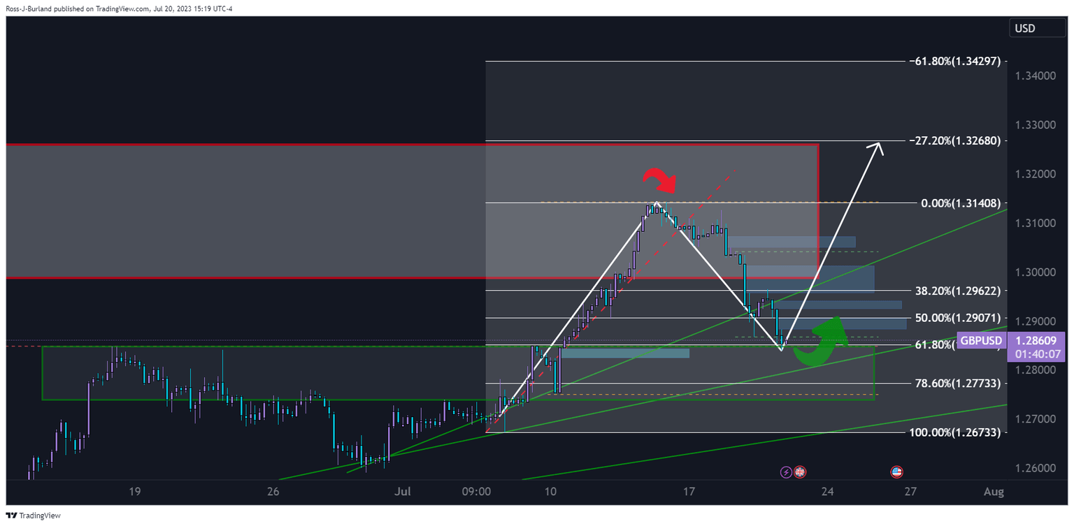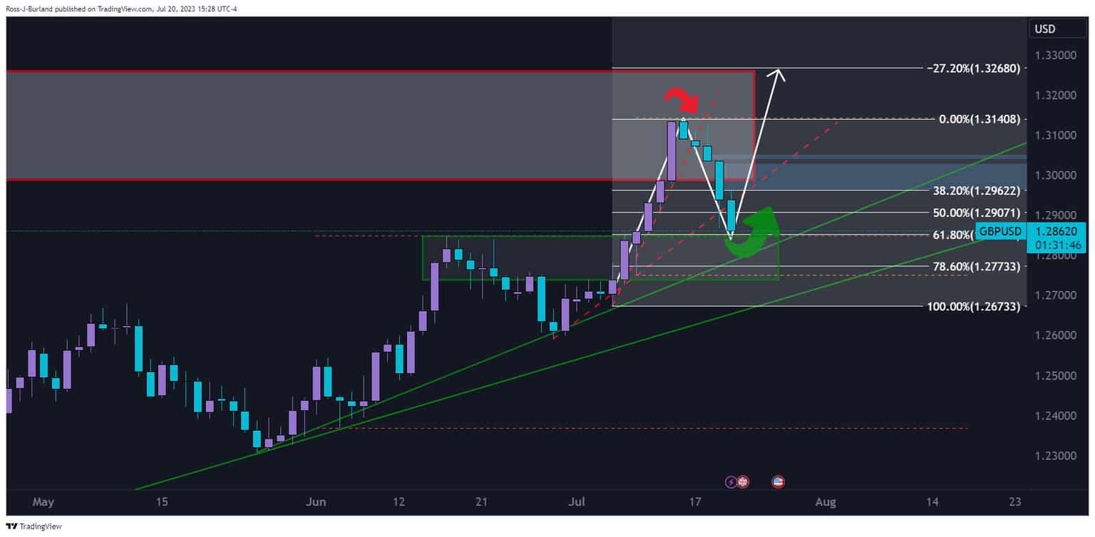 - GBP/USD bulls are waiting in the flanks for a discount.