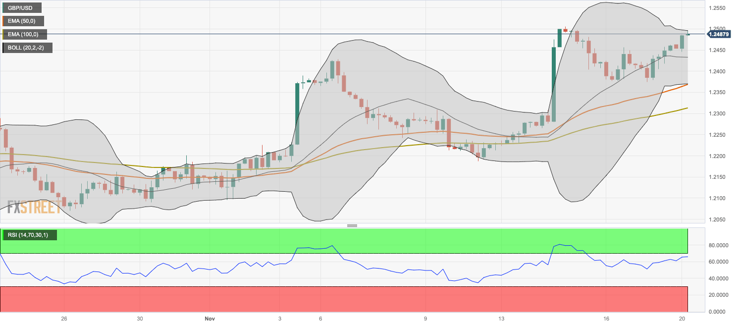 On the flip side, the 1.2370–1.2375 zone acts as a key support level. The mentioned level is the congestion of the lower limit of the Bollinger Band, the 50-hour EMA, and a low of November 16. The additional downside filter to watch is the 100-hour EMA at 1.2313. A breach of the level will see a drop to a low of November 8 at 1.2242, followed by a low of November 10 at 1.2187.