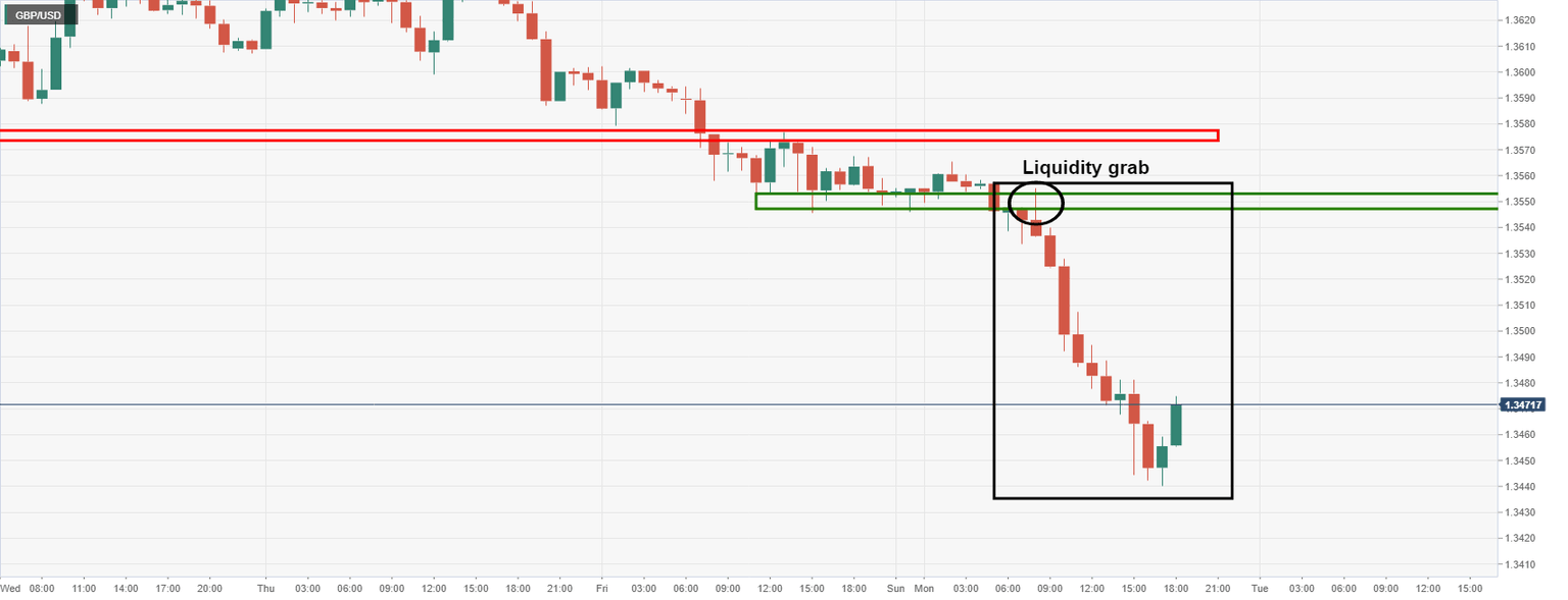 As per the prior analysis, GBP/USD Price Analysis: Bears eye a trip to 1.3450 as per weekly chart, cable has indeed move din on the target area as follows: