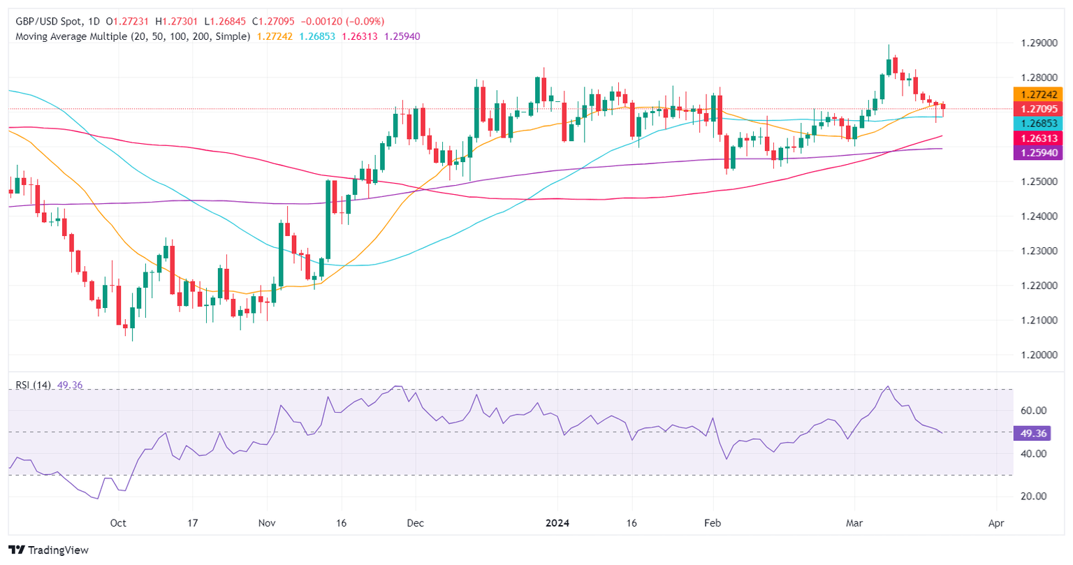 The Pound Sterling drops some 0.12% against the US Dollar in early trading during the North American session as traders brace for the Federal Reserve’s monetary policy. A softer inflation report in the United Kingdom (UK) didn’t move the needle in the session, as the GBP/USD trades at 1.2706, with sellers hoping to push prices below the 1.2700 mark.