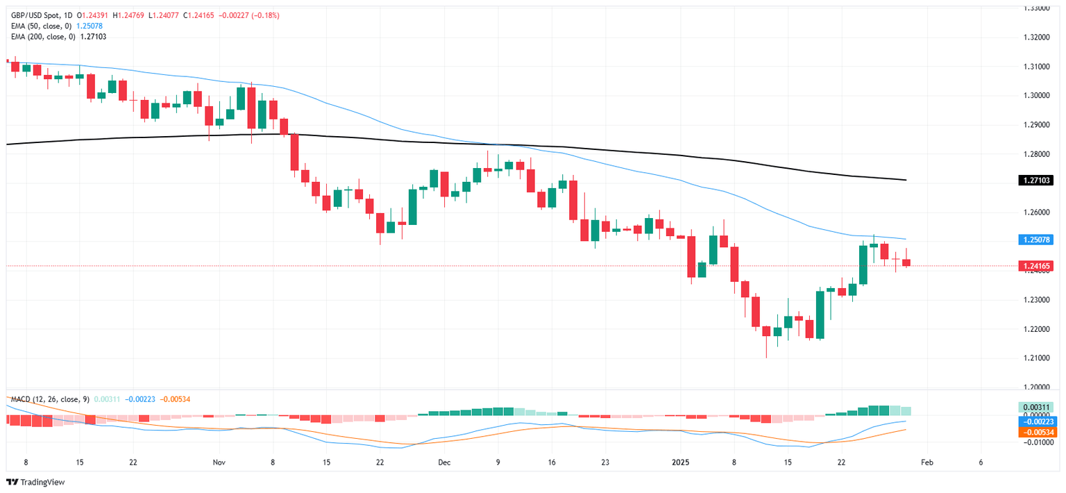 GBP/USD soured slightly on Thursday, shedding a scant one-fifth of one percent as markets grapple with mixed headwinds and keep risk appetite underbid. US President Donald Trump reiterated threats to impose stiff tariffs on Canada and Mexico as soon as February 1, with fresh threats in the pipe for import fees on Chinese goods and Crude Oil products.