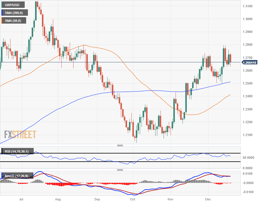 The Pound Sterling’s decline against the US Dollar saw the GBP/USD decline into the 200-hour Simple Moving Average (SMA) near 1.2635, and a limited rebound sees the pair constrained in the midrange between the 200-hour SMA and the 50-hour SMA near 1.2690.