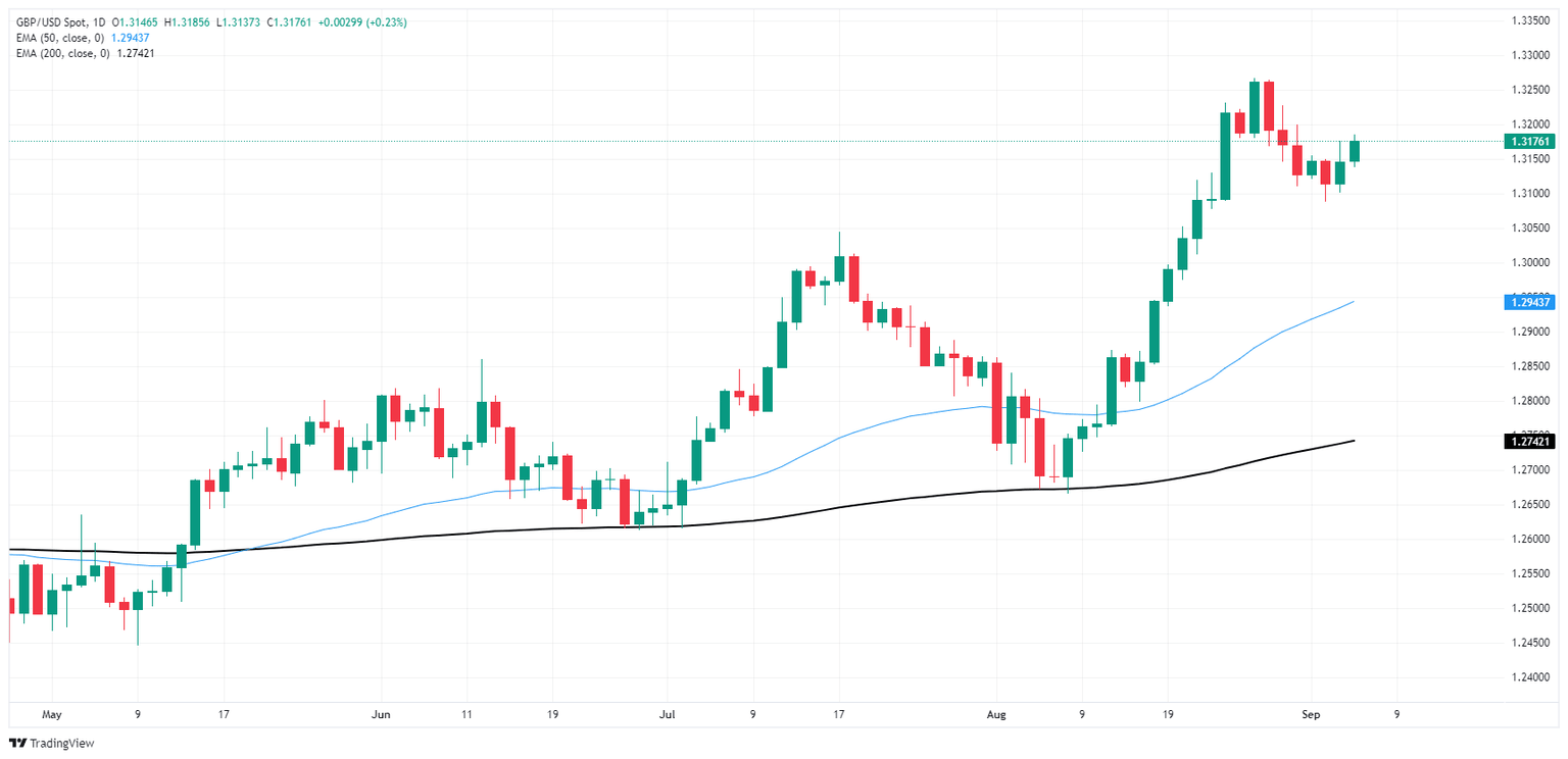 GBP/USD climbed for a second straight day on Thursday, setting up for a bullish recovery despite failing to recapture the 1.3200 level. Market sentiment held on the high side as a decline in new jobs growth kept hopes for an extended rate cut from the Federal Reserve (Fed) pinned to the ceiling.