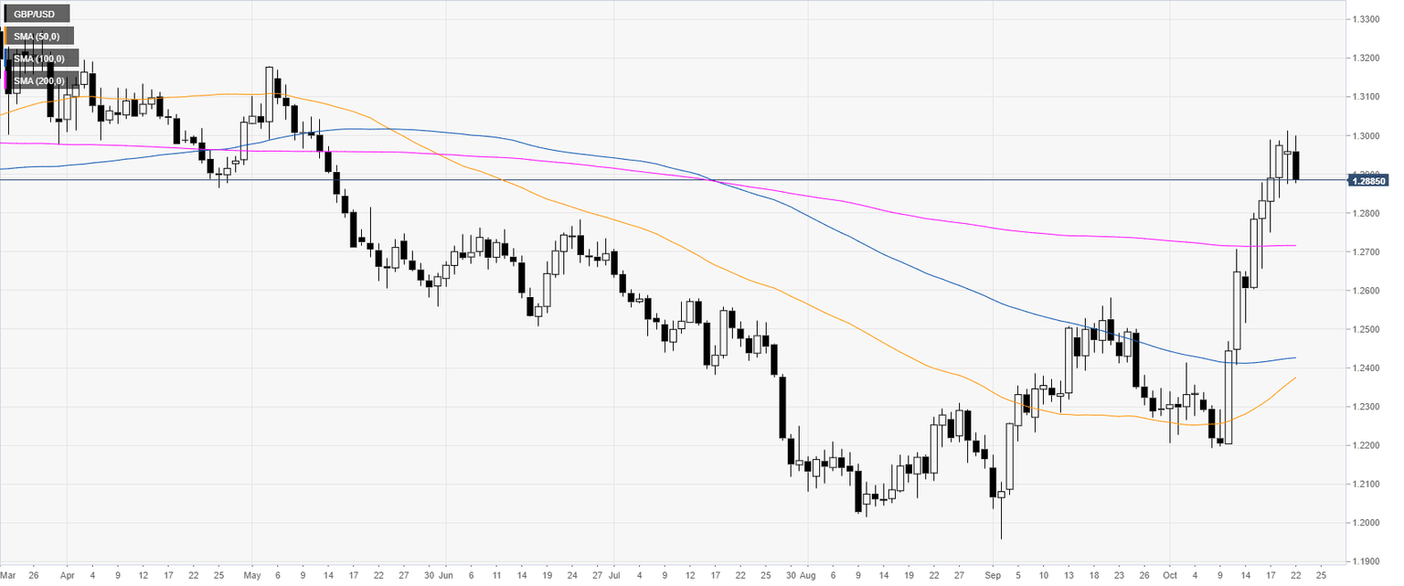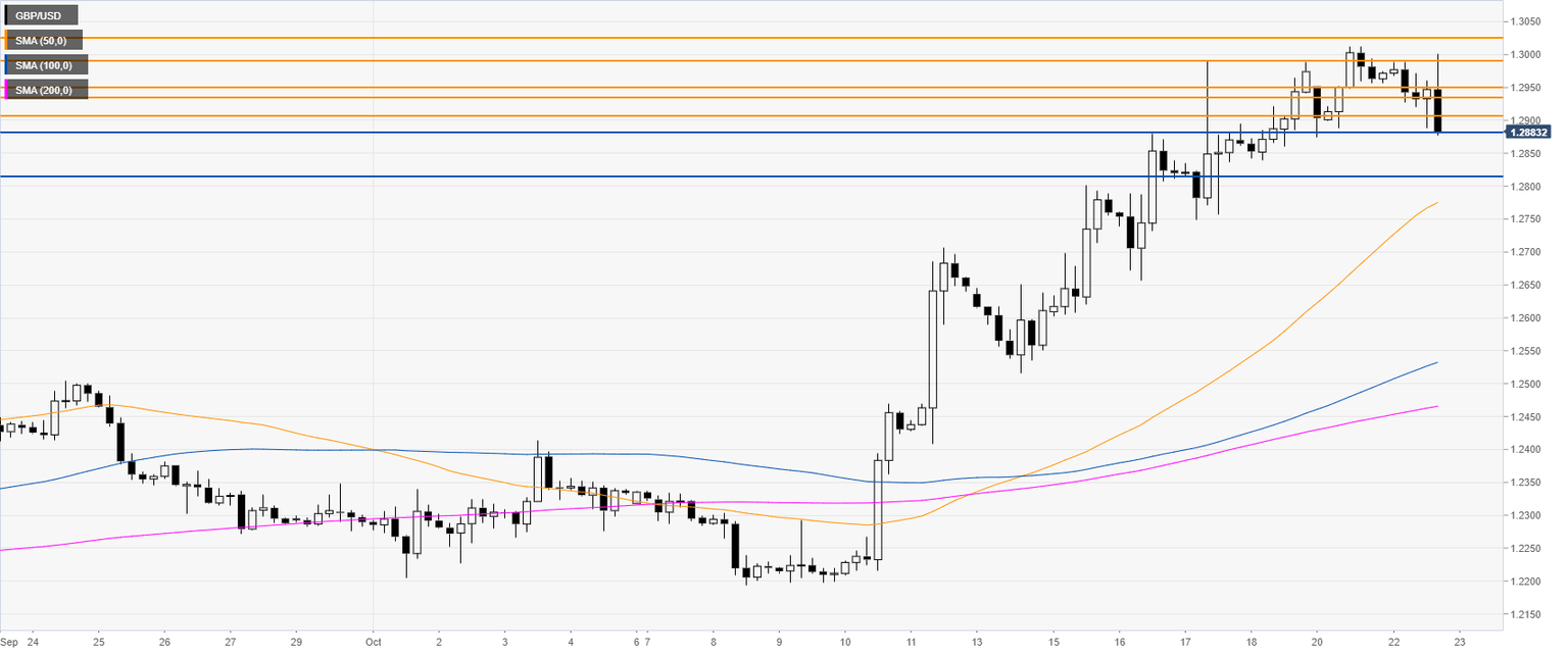 GBP/USD technical analysis: Sterling euphoria abates as Brexit gets delayed, trading sub-1.2900 handle