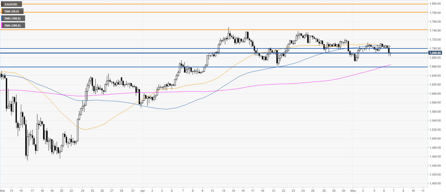 - XAU/USD remains sidelined near the 1690/1700 support zone.