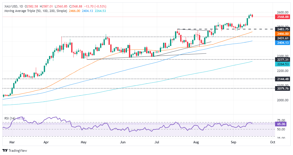 Conversely, the XAU/USD uptrend will resume if buyers drag prices to the all-time high of $2,589. If surpassed, further upside could be expected with the psychological levels of $2,600, $2,650 and $2,700.