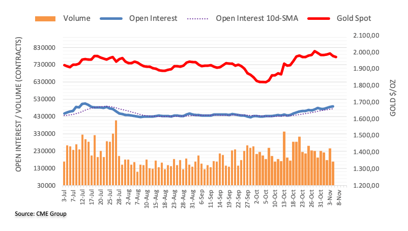 Gold kicked off the week on the back foot amidst rising open interest. That said, further weakness appears on the cards for the precious metal in the very near term, with immediate support at the weekly low of $1953 (October 24).