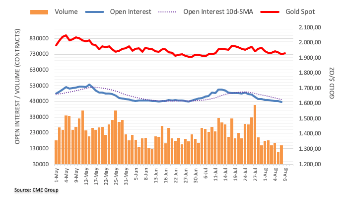 Gold prices dropped for the second consecutive session on Tuesday. The downtick was on the back of further decline in open interest, which should be supportive of a near-term rebound. So far, the $1900 region emerges as a decent contention for the time being.
