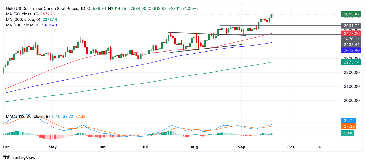 Gold smashes above the previous record highs set on Wednesday of $2,600 following the Fed’s decision. At this meeting, the US central bank decided to cut interest rates by a double-dose of 50 pbs (0.50%).