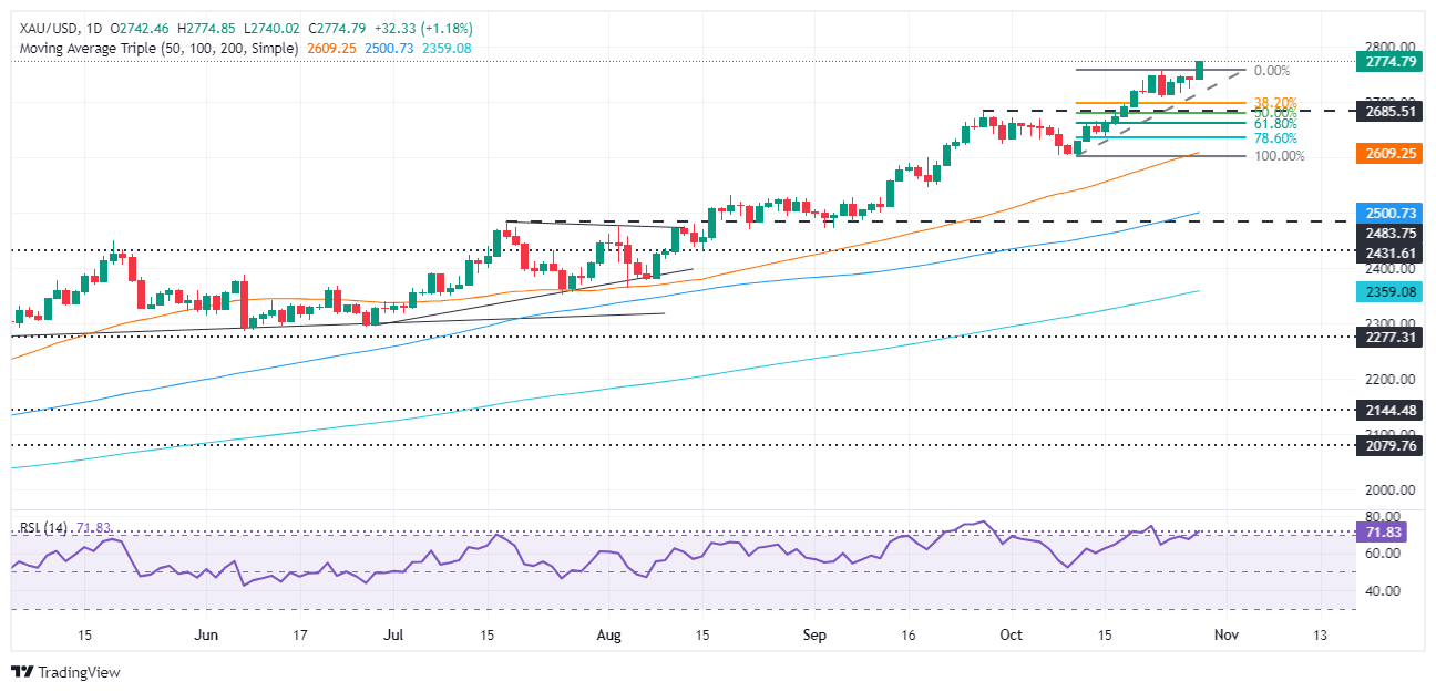 Gold hit a new all-time high (ATH) of $2,774 late in the North American session amid a risk-on mood and a retracement in US Treasury yields. Following the release of mixed US data on Tuesday, investors seem convinced that the Federal Reserve will lower borrowing costs at the November meeting.