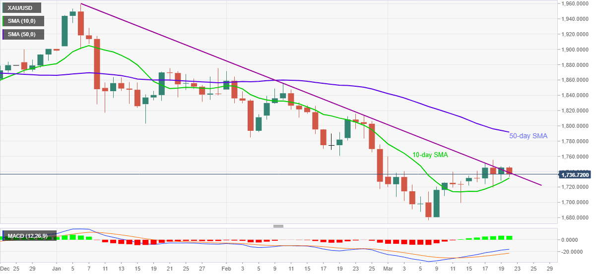 However, bullish MACD and the commodity’s sustained trading above 10-day SMA keeps gold buyers hopeful above $1,731.