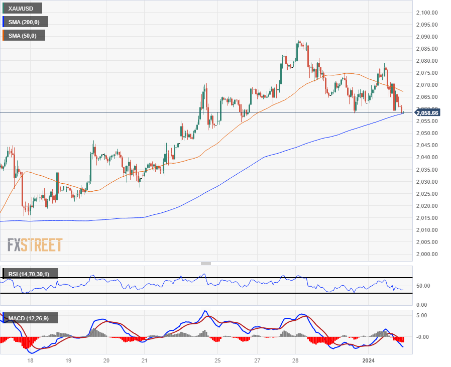 Intraday action in Spot Gold has the XAU/USD dipping into the 200-hour Simple Moving Average (SMA) near $2,060, with near-term bids capped off by the 50-hour SMA descending below $2,070.