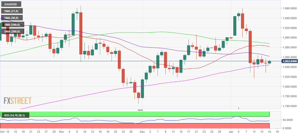 At the time of writing, gold trades at $1852.40, up 0.29% on the day, having found dip-demand at lower levels earlier this week.